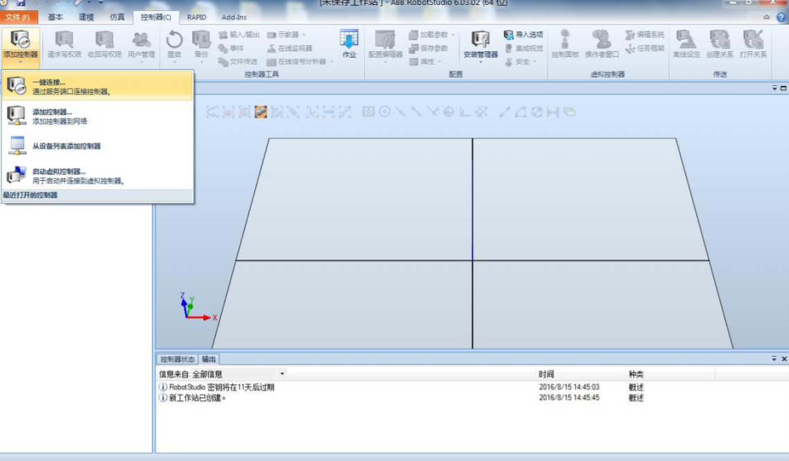 在RobotStudio的添加控制器选项卡下,选择一键连接;