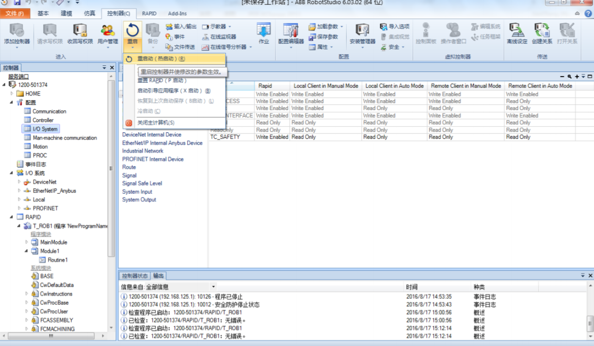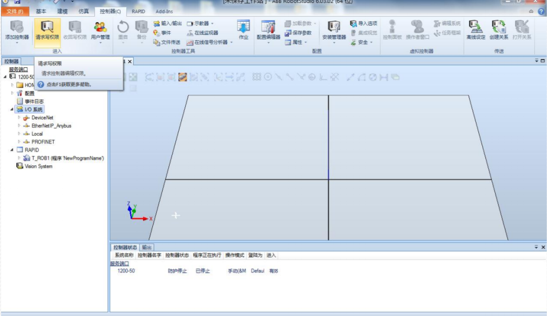 连接上后,将机器人状态钥匙开关切换到手动,点击请求写权限: