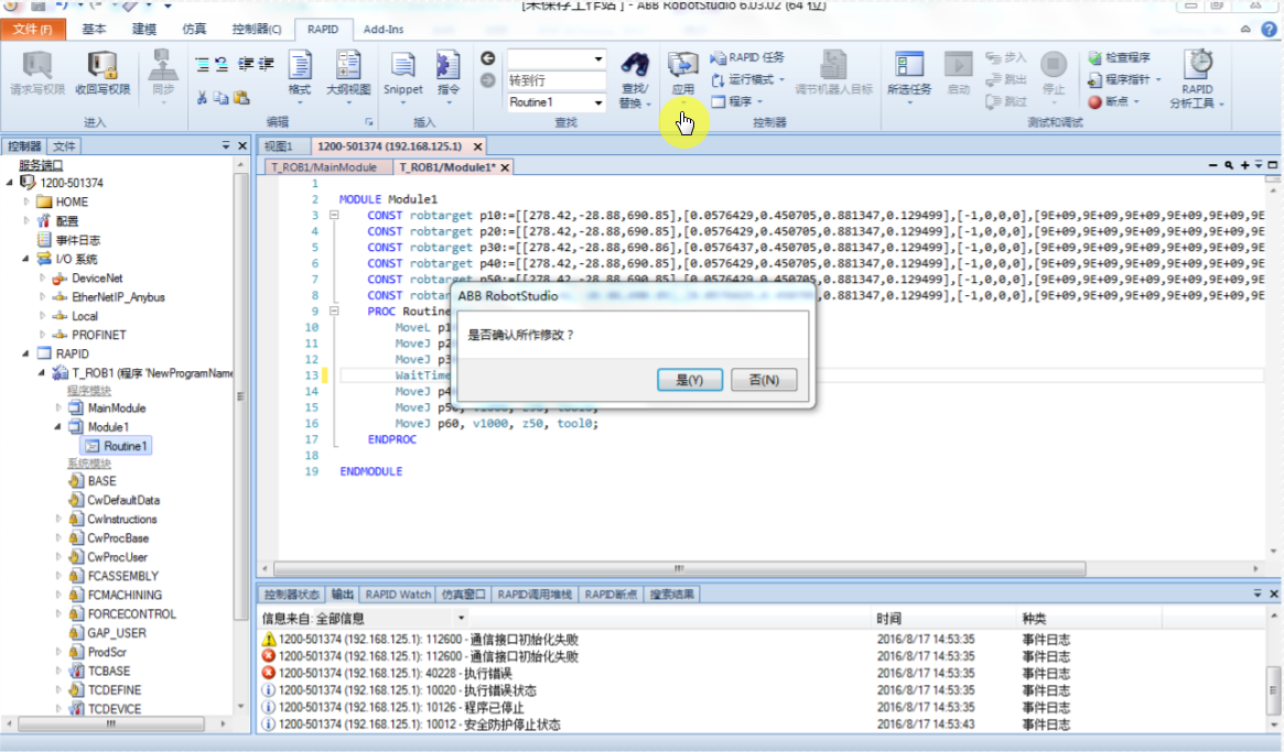 程式修改完成,在示教器上点击撤回,收回写权限;