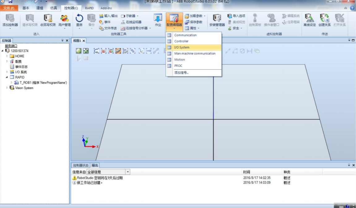 在控制器选项卡中,选择配置编辑器中的I/O System: