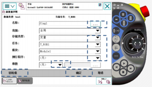 - 示教器控制面板选择程序数据:
