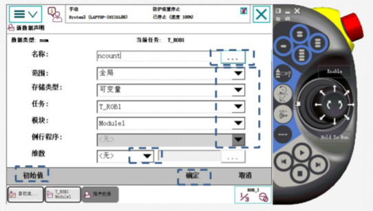 - 但 ABB 在新建程序数据,选择数据类型后,又多了一个存储类型和范围的设定,这样下来,同一个类型,又会有不同的限制条件;